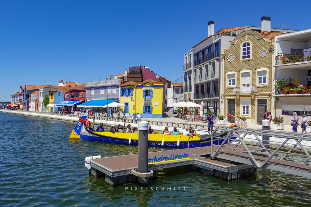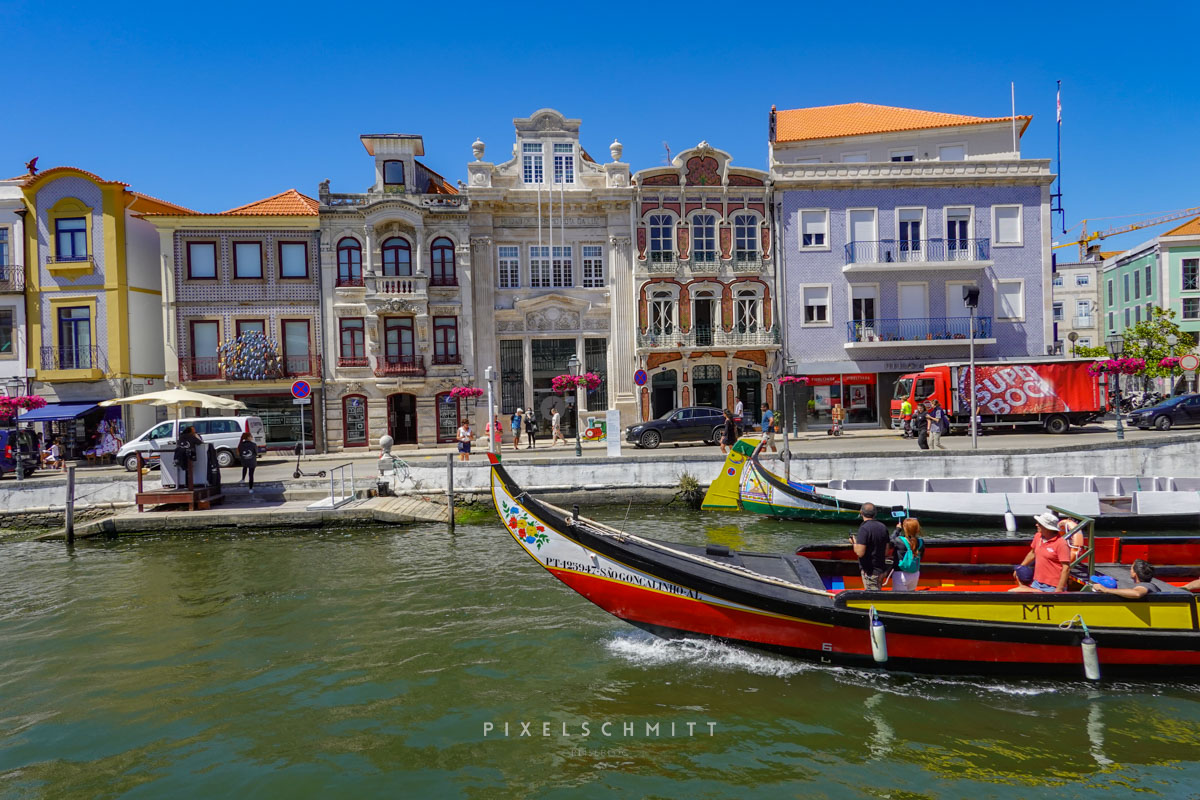 Auf den Kanälen fahren motorbetriebene Boote (sog. “Barcos Moliceiros” (Seetang-Boote) die Touristen durch die Stadt. Entlang der Kanäle kannst du tolle und farbenfrohe Architektur entdecken. Hier trifft religiöse Baukunst auf sehr schöne Fliesen an den Fassaden. Gerade im Fischerviertel findest du schöne bunte Häuser und Kopfsteinfplaster entlang der Kanäle.